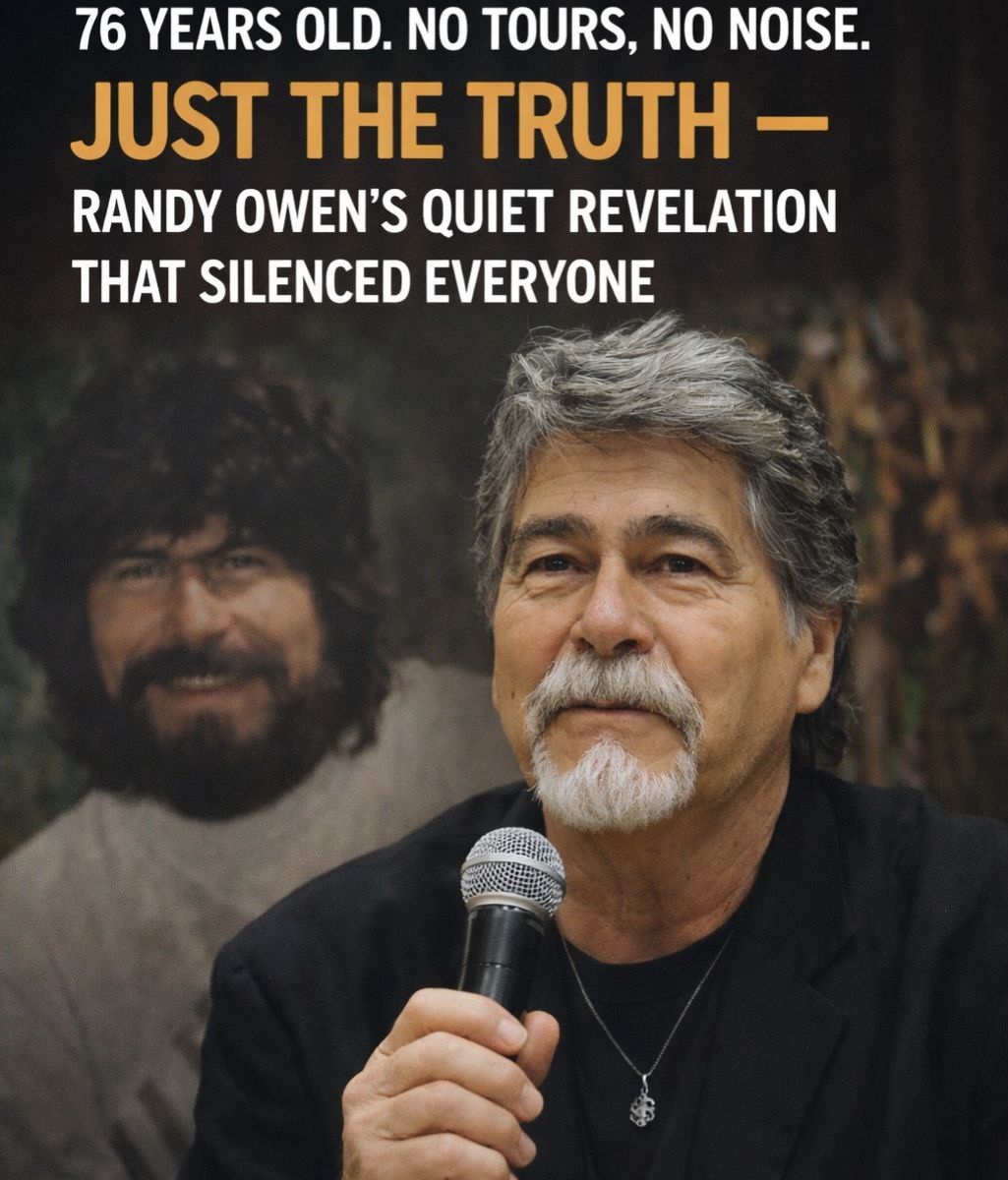 At 76, Randy Owen stepped away from the spotlight without a farewell tour, without flashing lights, without a final curtain call designed for applause. There were no grand announcements, no countdown clocks, no carefully staged goodbyes. Instead, there was only a simple, steady truth — spoken softly, but felt deeply — from a man who has spent a lifetime letting songs do the talking.