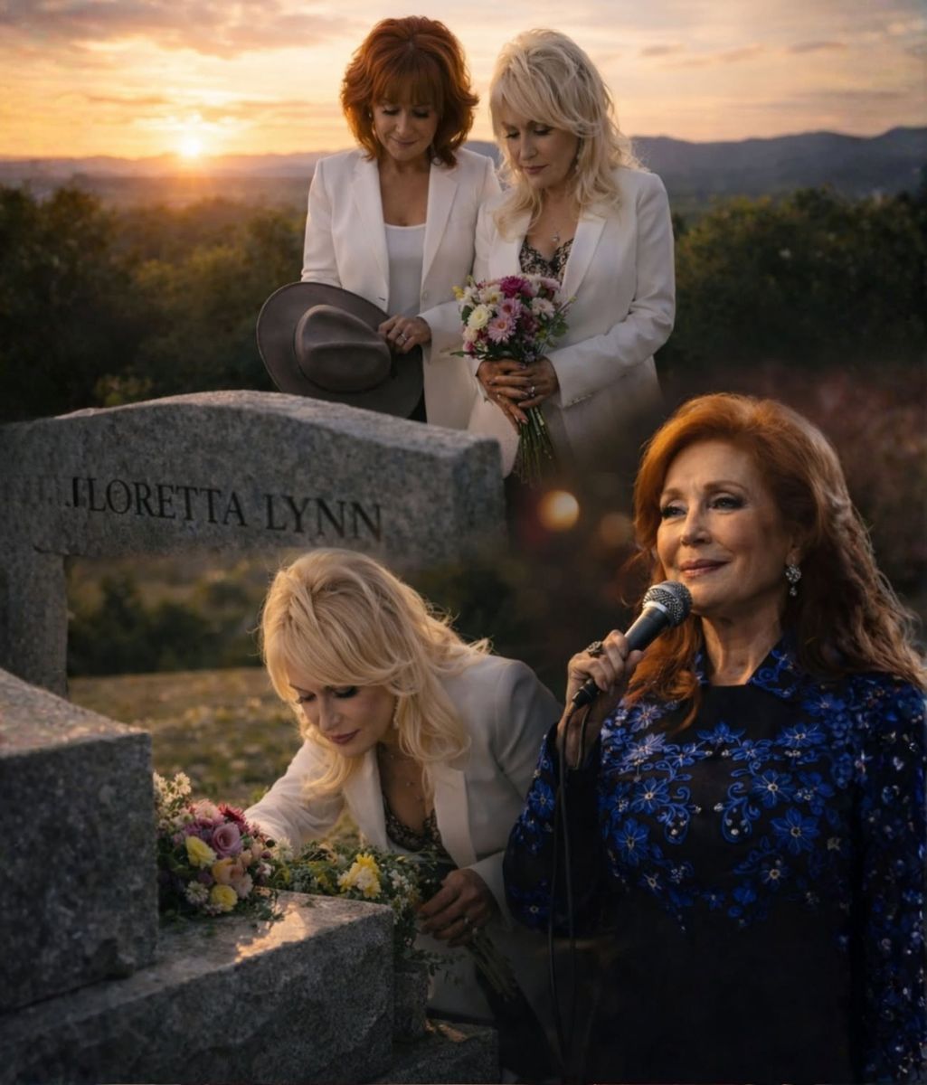 As the Tennessee sun slowly slipped behind the hills, the world seemed to soften—not with spectacle, but with stillness. It was in that quiet, golden hour that Reba McEntire and Dolly Parton stood together at Loretta Lynn’s resting place, not as icons, not as performers, but as two women remembering someone who had shaped their lives in ways the world could only begin to understand.