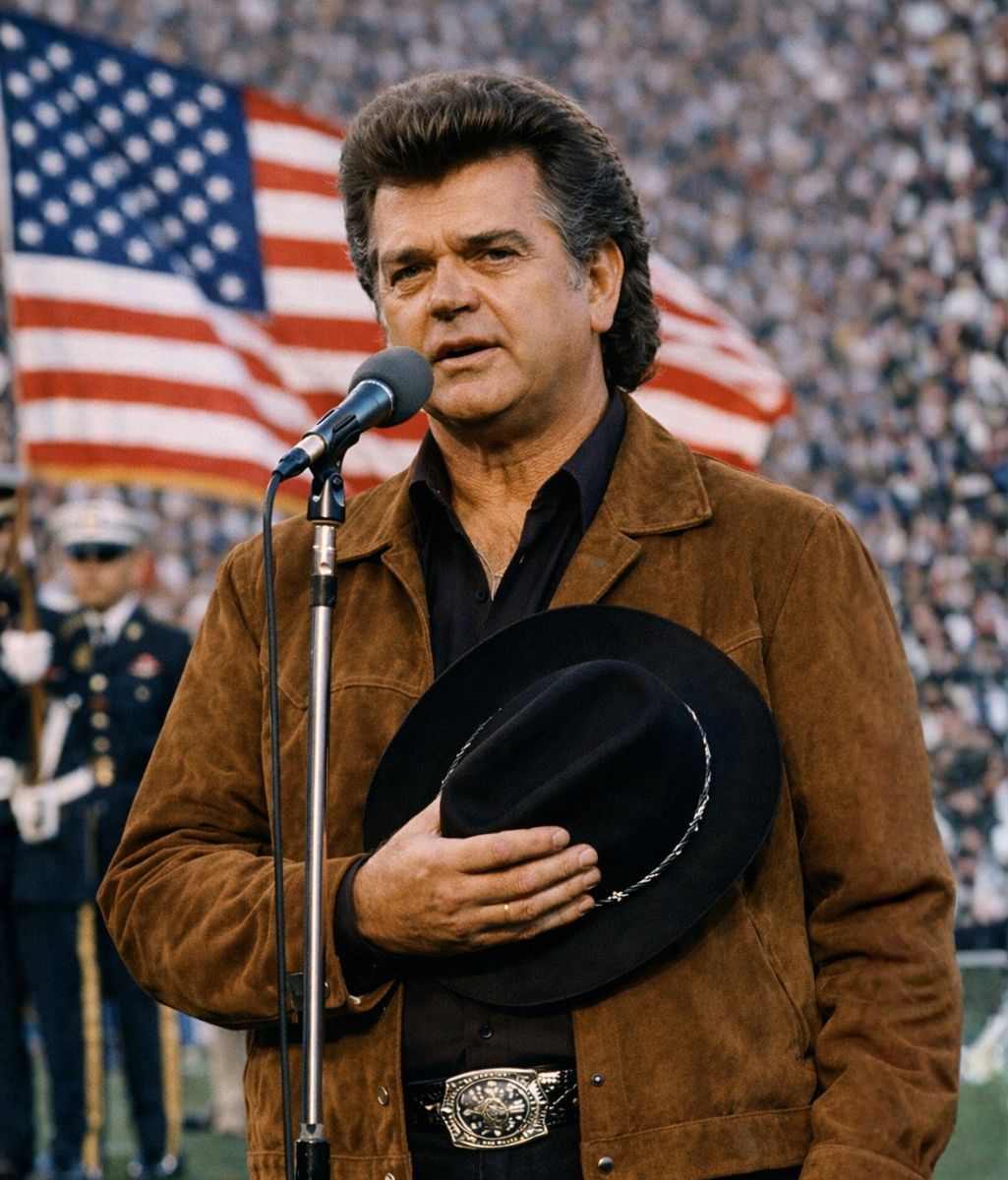 In the early 1980s, at a time when the Super Bowl was still finding the ceremonial weight it carries today, Conway Twitty stepped onto that field and did something quietly historic. There were no cinematic builds, no elaborate staging, no sense of global theater. The moment was simple. Solemn. Unadorned. And in that simplicity, it carried real meaning.