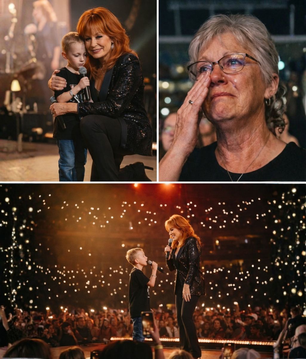 His voice trembled at first — not from fear alone, but from the weight of the moment. The sound system that had carried Reba’s unmistakable voice for decades now carried his — small, fragile, yet unmistakably brave.
