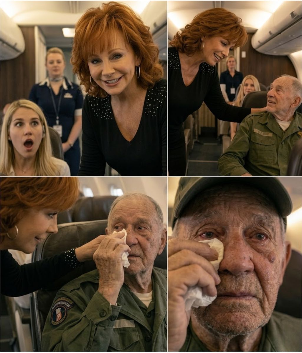 Passengers had already boarded when Reba McEntire, who was seated in First Class, noticed an elderly military veteran making his way down the aisle. Observers later said that without hesitation, she stood up, approached the man politely, and offered him her seat.