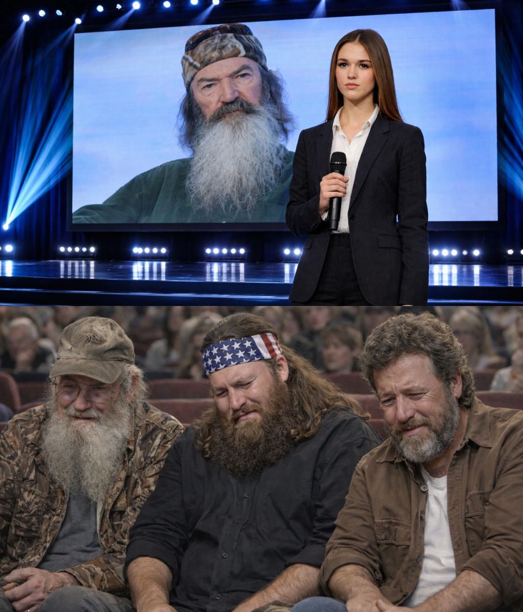 The arena was full, yet it had never felt so still. In a space built for sound, applause, and celebration, something entirely different unfolded — a moment shaped not by music, but by reverence. As the lights softened and the crowd instinctively quieted, Sadie Robertson walked onto the stage to honor her grandfather, Phil Robertson.