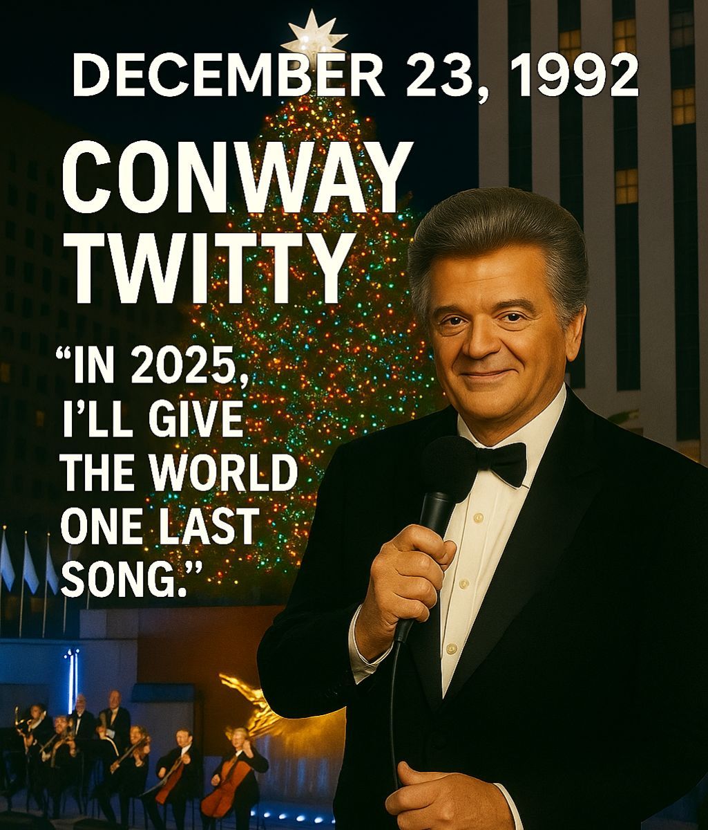 It was a cold December evening in 1992, just two days before Christmas, when Conway Twitty gathered a few close friends and longtime bandmates at his home in Hendersonville, Tennessee. The fireplace glowed, carols played softly in the background, and the man whose velvet voice had defined love songs for three decades seemed unusually reflective. Those who were there remember him sitting quietly for a while before speaking a line that still sends chills down spines: “In 2025, I’ll give the world one last song.”