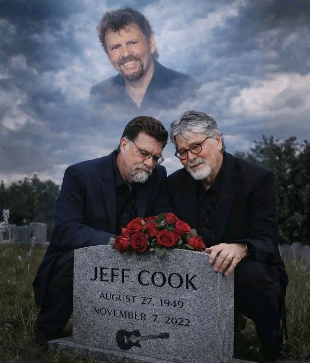 When Randy Owen and Teddy Gentry knelt beside the resting place of Jeff Cook, the only sound was wind moving gently through trees.