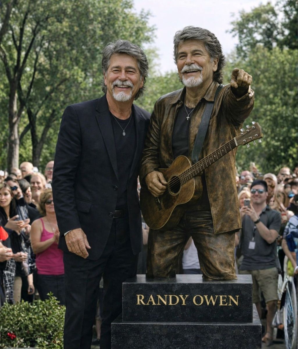 In Fort Payne, on streets where country radio once spilled from open truck windows and garage rehearsals carried farther than anyone imagined, Randy Owen stood silently yesterday before a life-sized bronze statue of himself.