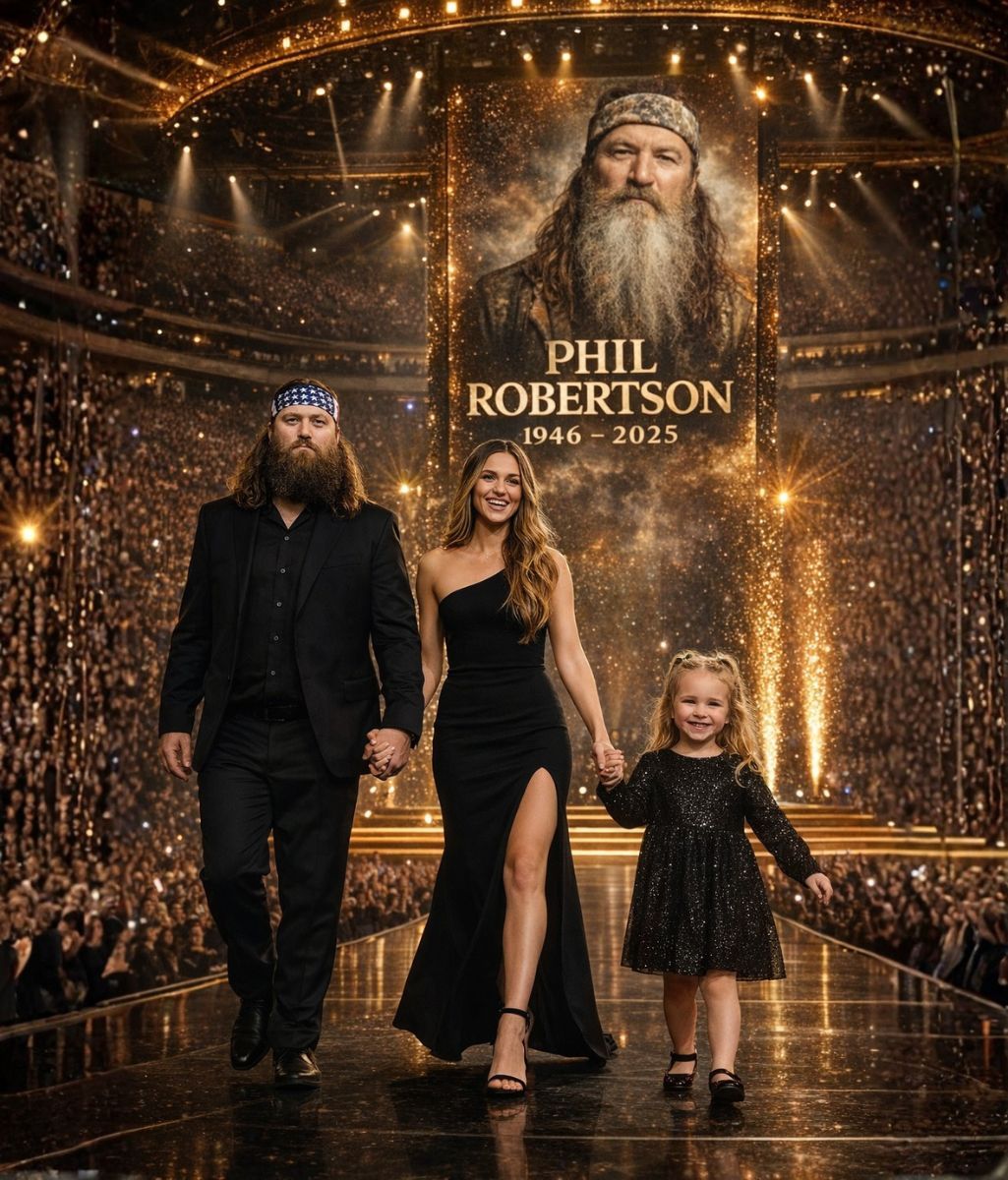 They had come to mark the passing of Phil Robertson. Not with spectacle, but with proximity. Not to explain grief, but to stand inside it together. In that choice, four generations were felt at once: the child who does not yet carry language for loss; the parent who carries responsibility; the grandparent who carries memory; and the patriarch whose absence filled the room with a weight that words could not reach.