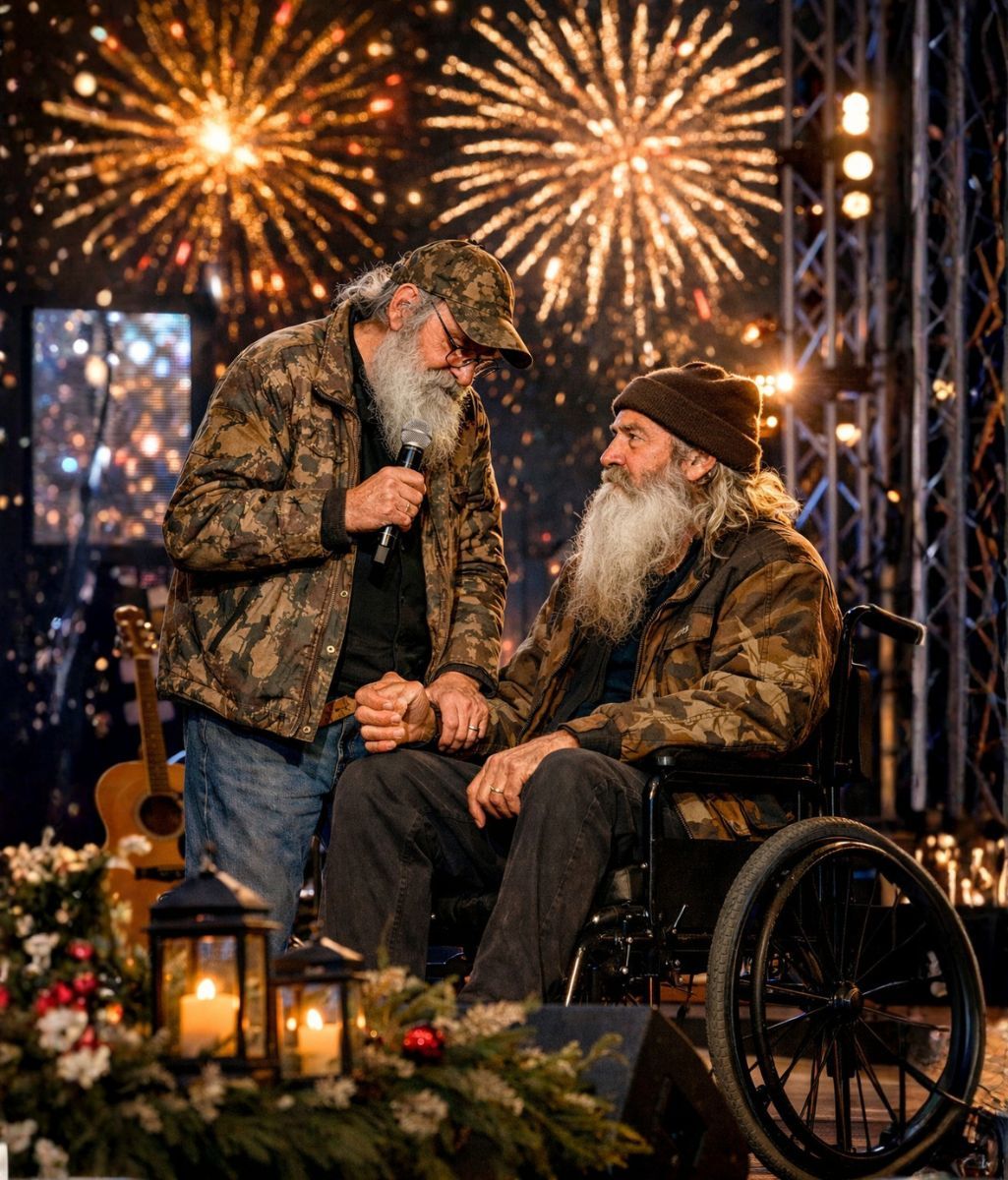 As the final moments of New Year’s Eve 2026 approached, Si Robertson stood on stage and did something no one expected. His voice broke. His words slowed. And in a single, unguarded admission, he acknowledged the absence that had already been felt by everyone in the room — that Phil Robertson was no longer there to share the familiar moments they had lived through together for so many years.