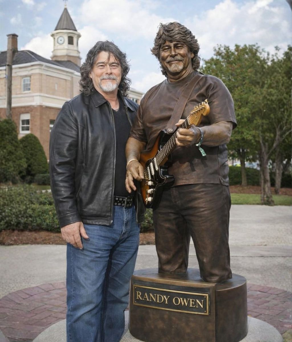 Yesterday, Randy Owen stood before a life-sized bronze statue of himself — not as a monument to fame, but as a reflection of a long road walked one patient step at a time. The air felt hushed, almost reverent, heavy with memory. It was not the stillness of performance, but the stillness of reckoning — a man quietly measuring the distance between who he was and who he became.