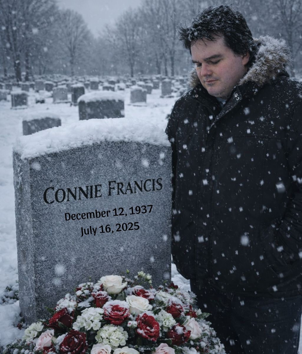 On a quiet Christmas night, Connie Francis stood beside her mother’s grave, the cold air heavy with prayer, memory, and the ache of everything left unsaid. The world beyond the cemetery gates carried on with lights and laughter, but here, time seemed to move differently — slower, softer, as if even the night understood the weight of remembrance.