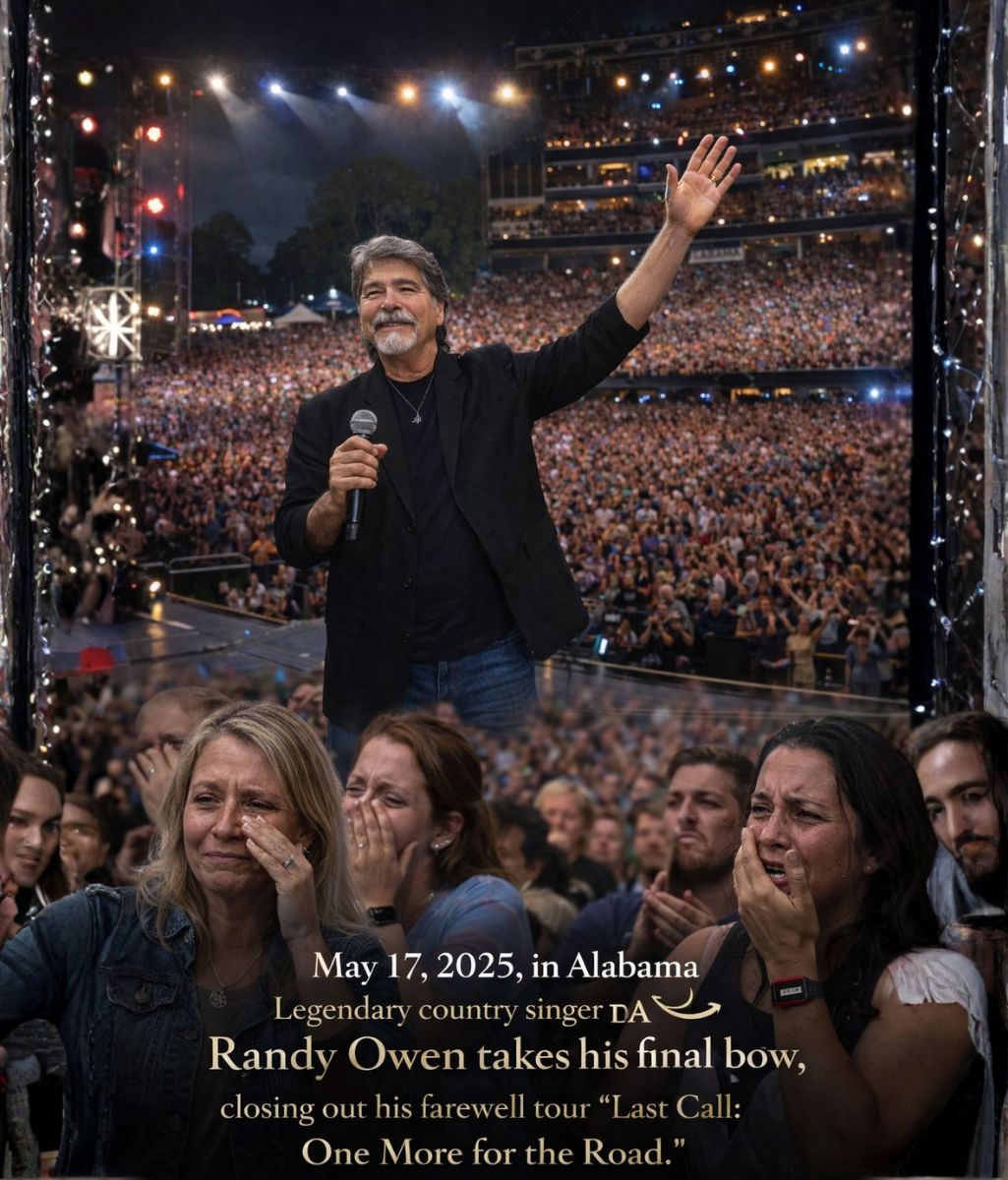 On the evening of May 17, 2025, beneath an Alabama sky that felt heavy with memory, Randy Owen stepped into a moment he had carried toward for years. It was not announced with spectacle or framed as a dramatic ending. It arrived the way his career always had — steady, intentional, and grounded in respect for the music and the people who followed it. This was the final stop of his farewell tour, Last Call: One More for the Road, and with it came the quiet closing of a chapter that had stretched across more than five decades.