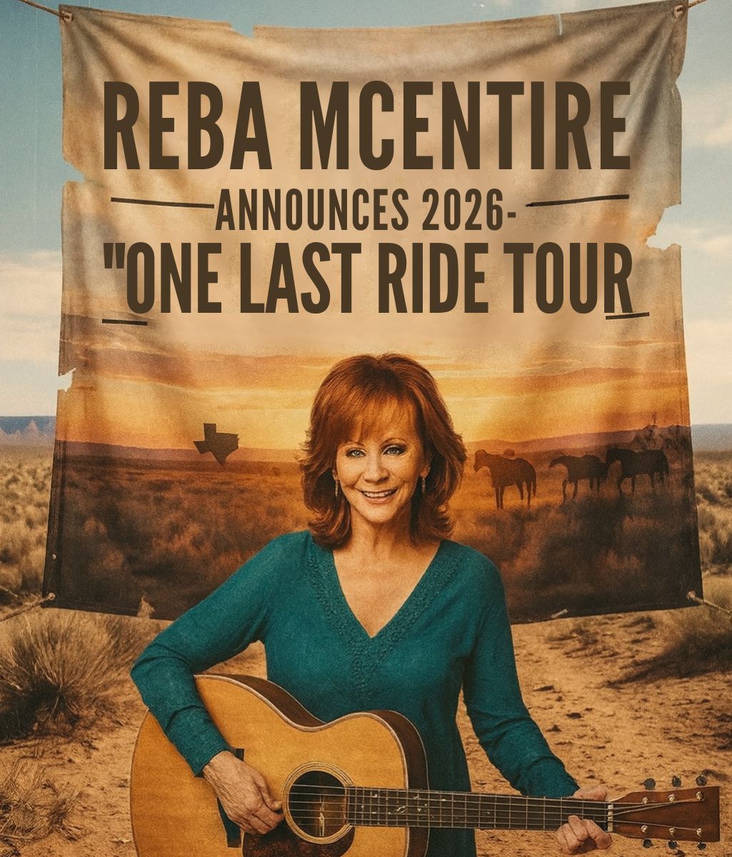In a moment that has left fans teary, grateful, and breathlessly nostalgic, Reba McEntire — the beloved Queen of Country, the flame-haired powerhouse whose voice carried generations — has officially announced her 2026 “One Last Ride” Farewell Tour. It is the kind of news that lands with equal parts heartbreak and celebration: an ending we all knew would come someday, yet still hoped to postpone.