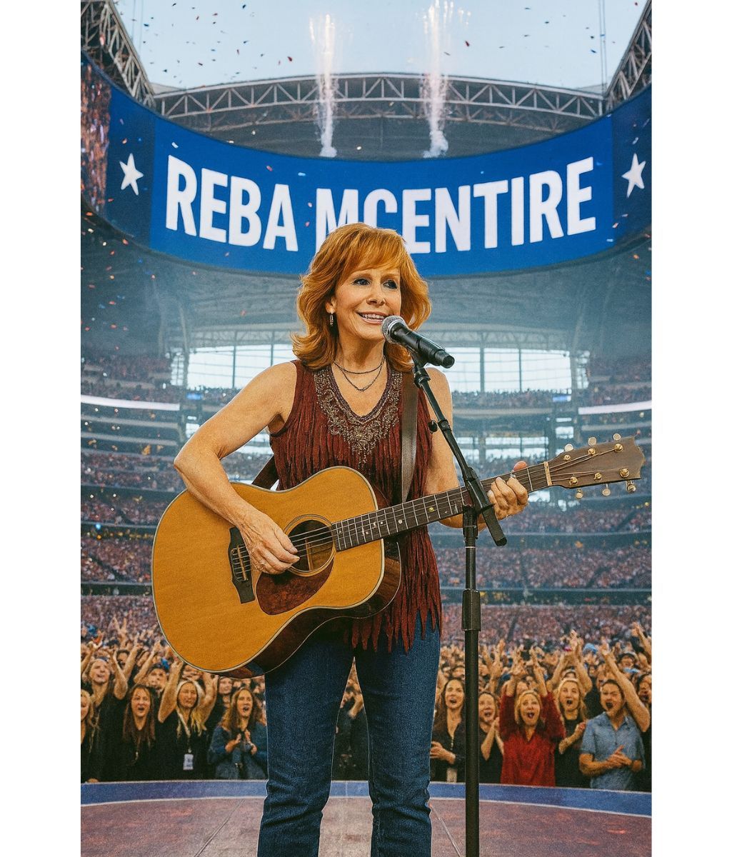 For the first time ever on this scale, Reba’s legendary voice — rich, commanding, fierce, and unmistakably hers — will rise above the roar of the stadium, transforming America’s biggest night into an anthem of heart, heritage, and unshakable Oklahoma grit. Her presence alone turns the halftime lights into something deeper and more meaningful: a celebration of artistry, endurance, and one of the most influential women ever to grace a country stage.