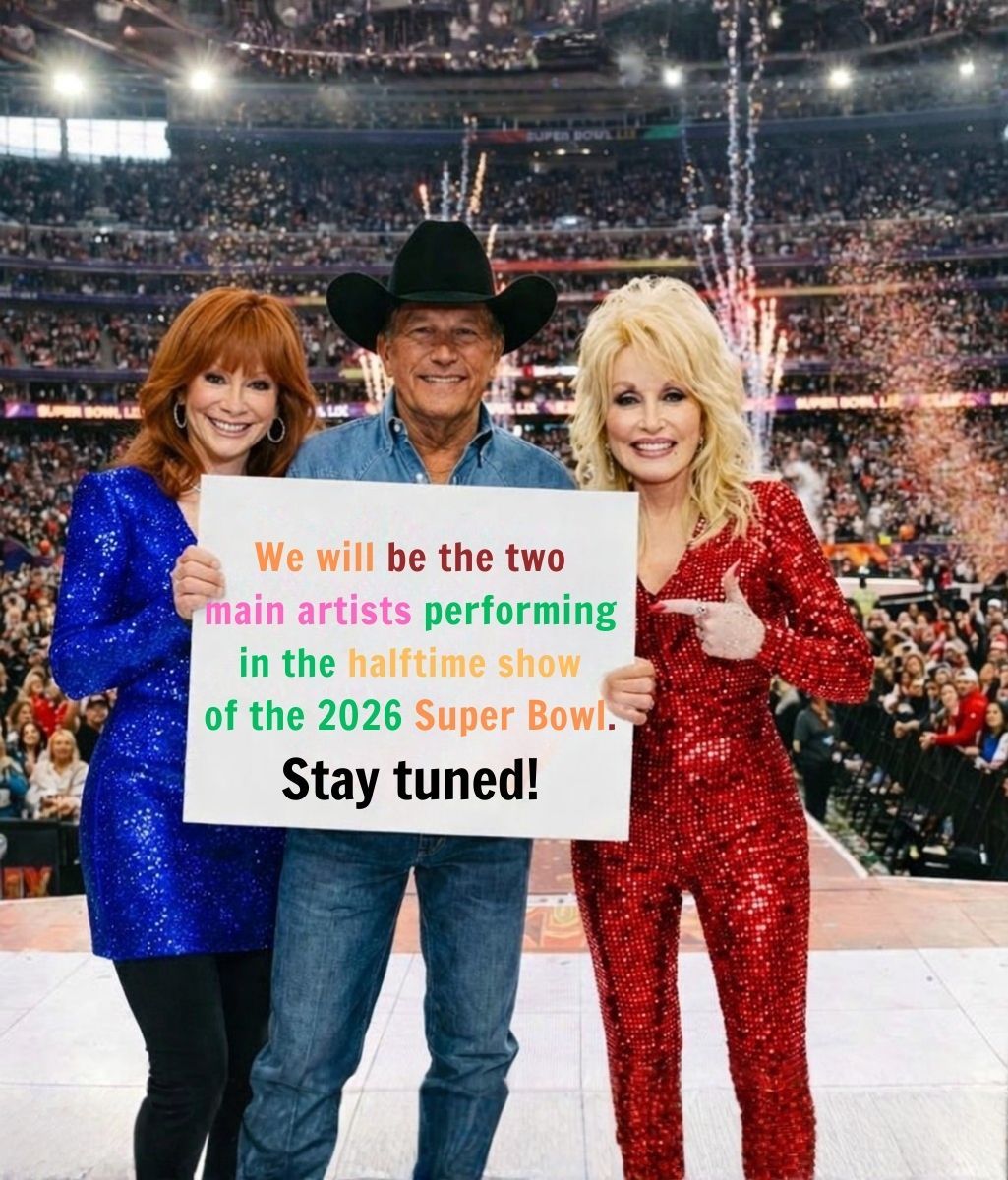 For the first time in Super Bowl history, three pillars of American music are set to stand on the same halftime stage. Reba McEntire, George Strait, and Dolly Parton — artists whose combined influence spans more than a century of country music — are reportedly joining forces to headline Super Bowl LX’s halftime show, a move insiders are already calling unprecedented in scale, ambition, and cultural impact.