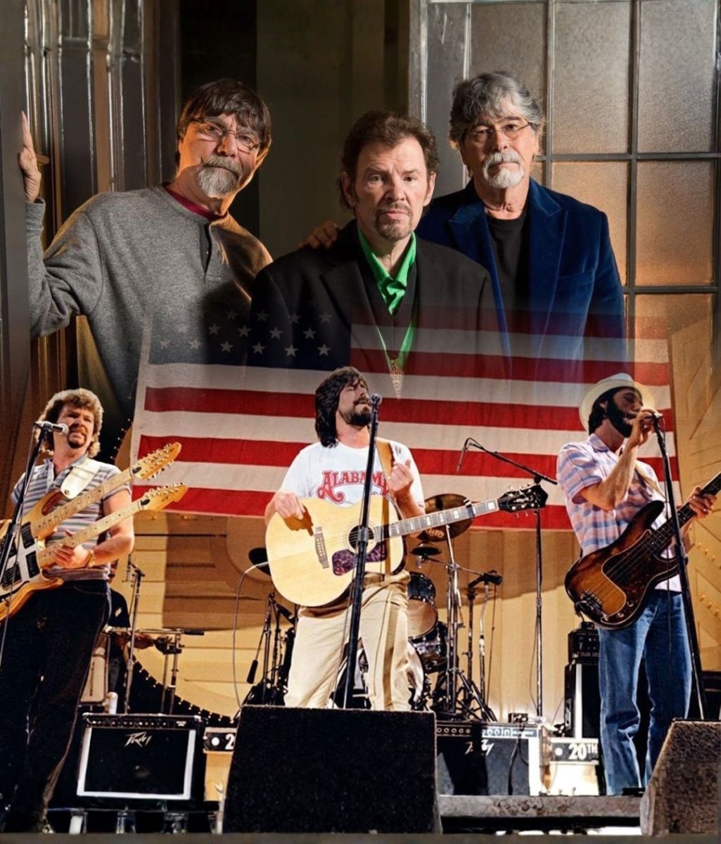 Randy Owen, Teddy Gentry, and Jeff Cook standing side by side again — three familiar figures whose harmonies once defined an era, whose songs carried small towns, back roads, and living rooms for more than half a century.
