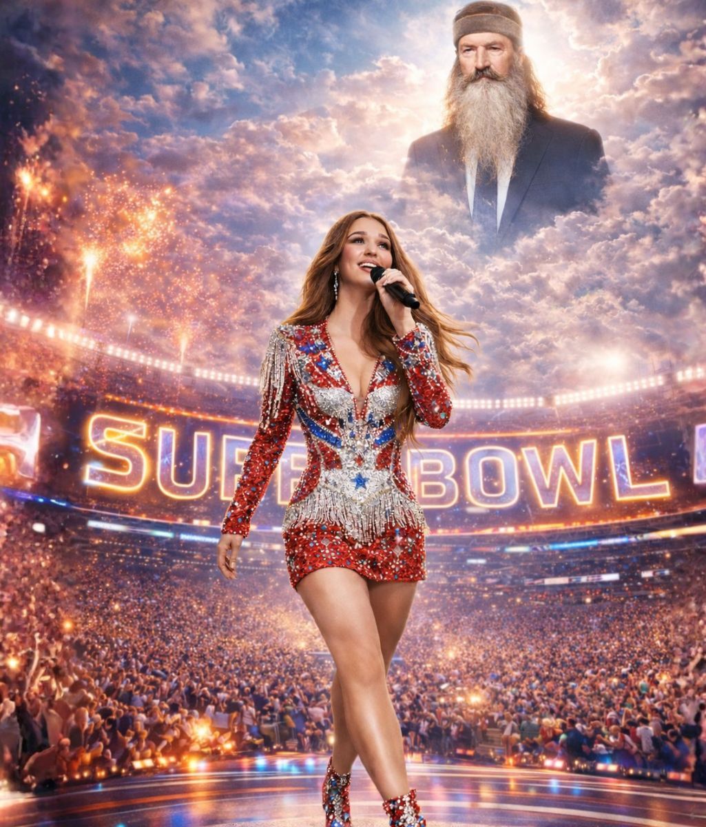 Imagine Sadie Robertson stepping into a quiet spotlight during the halftime interval — not as part of the official show, but as a deeply personal moment woven through collective imagination. In this story, she lifts a familiar song not for spectacle, but as a tribute that resonates with memory and legacy.