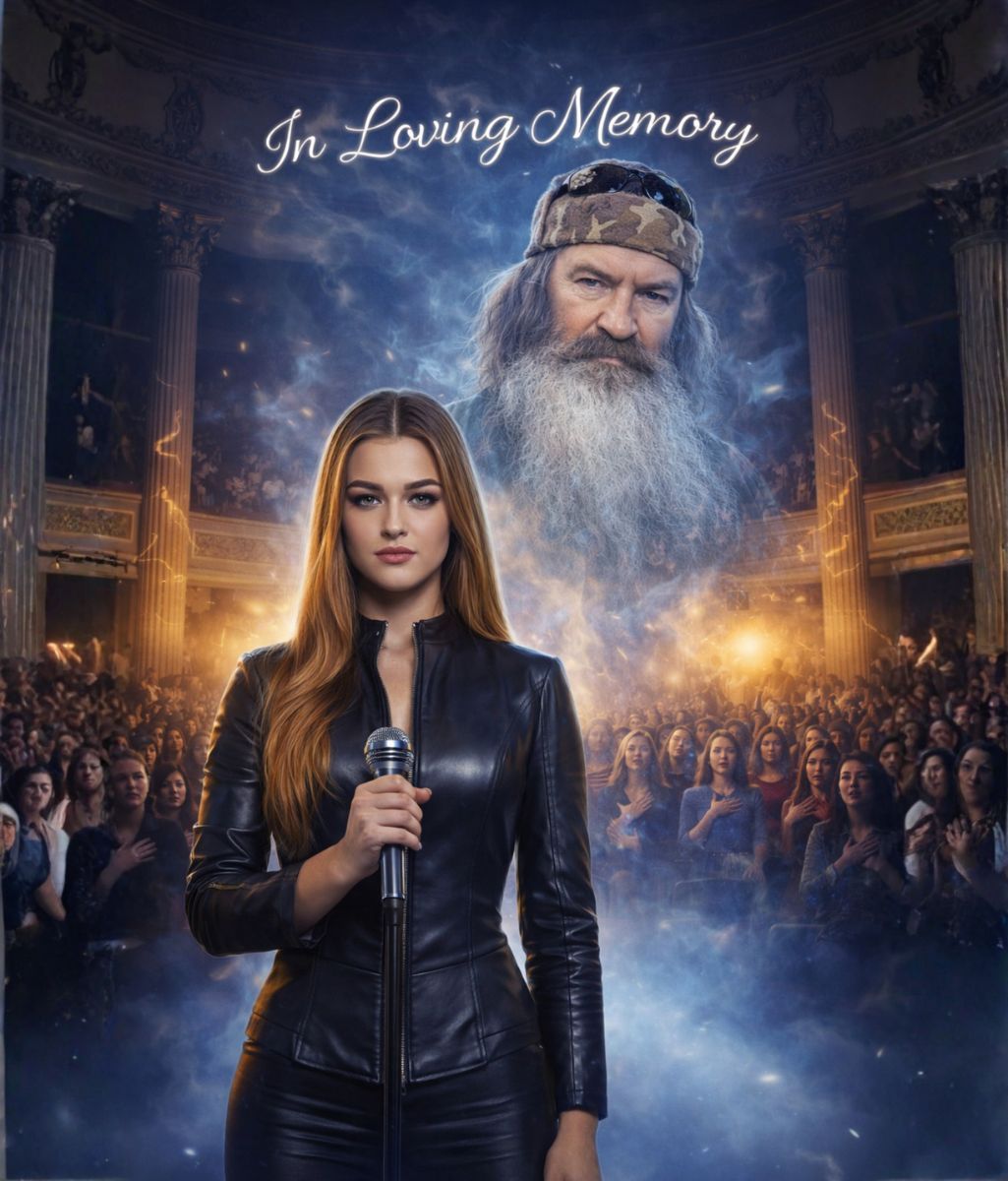 Sadie did not dramatize the tribute. She did not summon emotion with force. She spoke — and then paused — allowing silence to do what words could not. In that pause, the audience sensed something they could not quite explain: the feeling that Phil Robertson’s presence had returned, not as image or echo, but as essence.