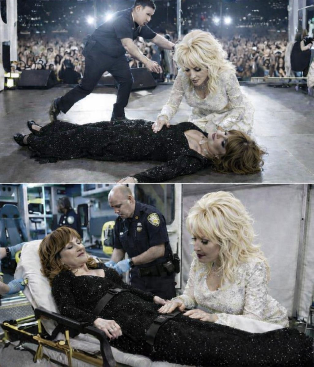Medical staff moved quickly, surrounding Reba as Dolly remained close, refusing to step away. Those near the stage said Dolly kept speaking softly to her friend, holding her hand, grounding her in a moment that felt terrifyingly uncertain. The show was officially stopped, and the crowd was gently ushered into waiting as news spread beyond the arena walls.